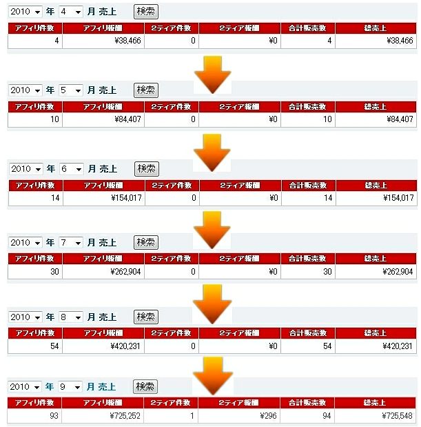 ネットビジネスでの収益の移り変わりの軌跡と実績